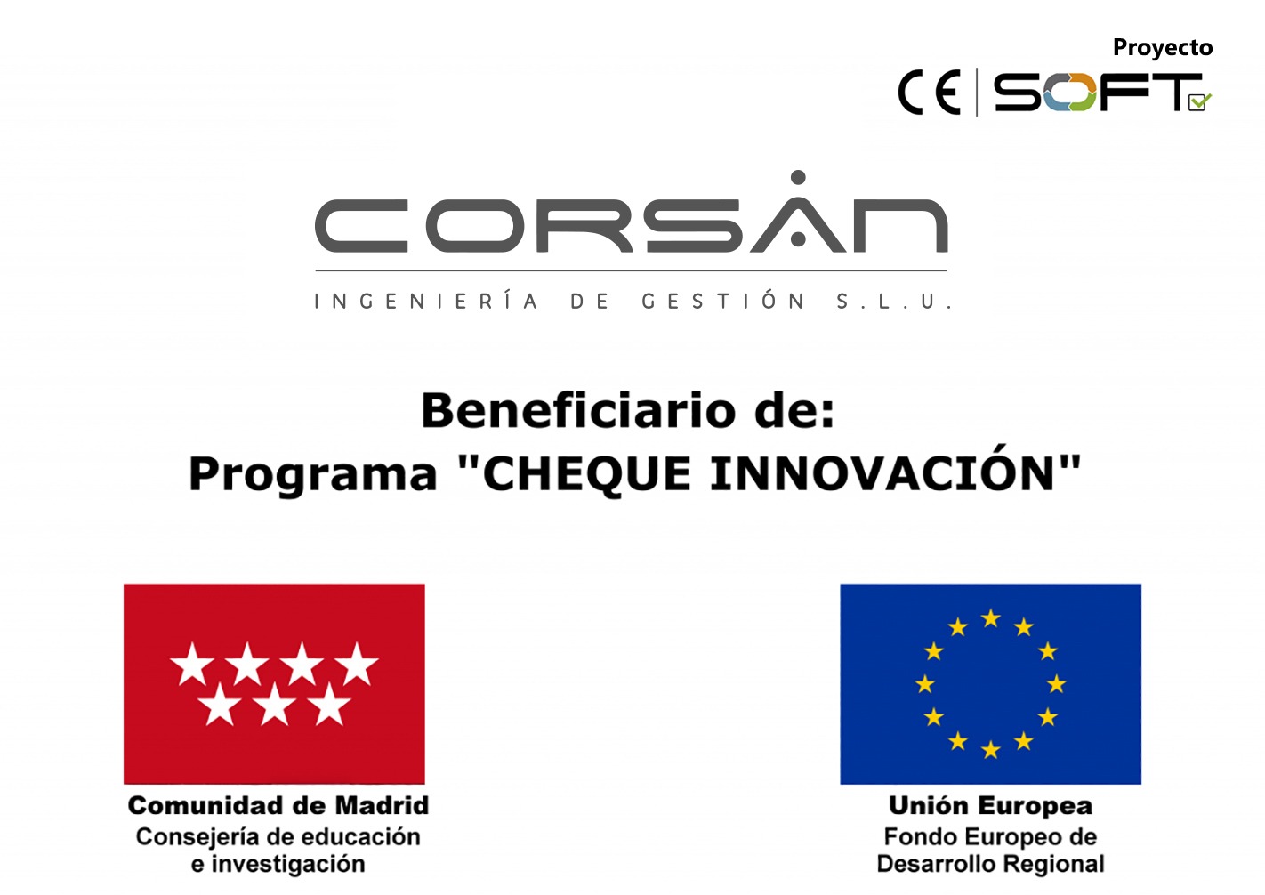 Corsán Ingeniería de Gestión, con el proyecto CE-SOFT, beneficiario del «Cheque innovación»